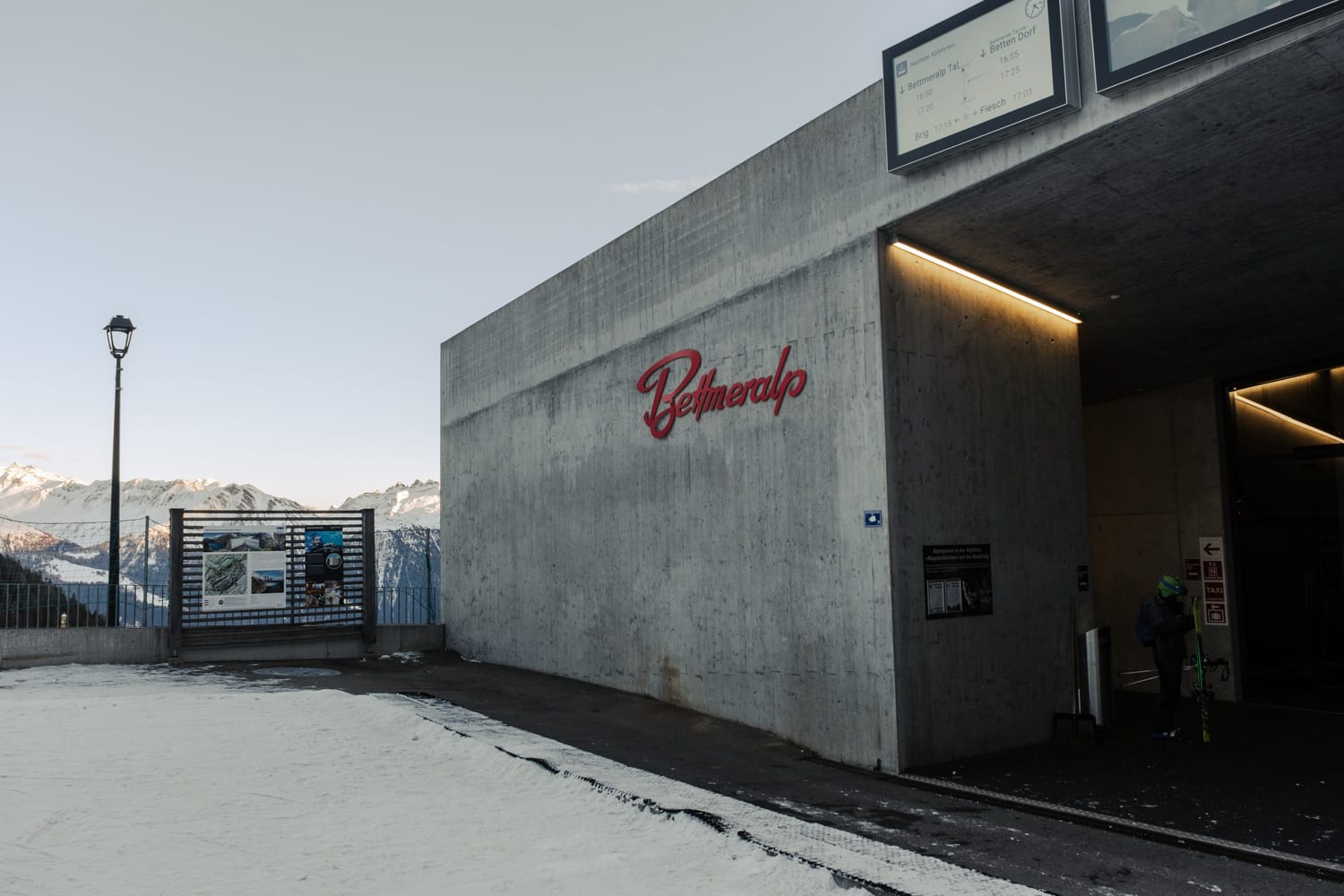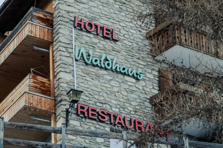 Wir haben während unseres Aufenthalts im Hotel & Restaurant Waldhaus ↗ wenige Meter zu Fuß von der Bergstation Bettmeralp übernachtet. Zum Hotel gehört ein Restaurant, ein Wellnessbereich mit Sauna und ein Kaminzimmer. Wir haben uns rundum wohlgefühlt und das Tolle daran war, dass wir abseits des Ortes in ruhiger Atmosphäre geschlafen haben. Vom Balkon haben wir einen Blick auf das beeindruckende Skigebiet unterhalb des Bettmerhorns in der Ferne.