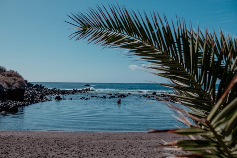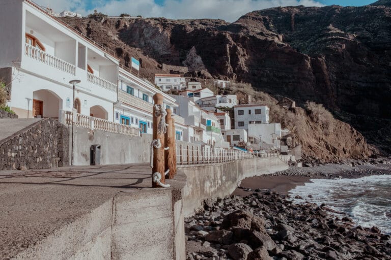 Am Strand von Alojera, das zur Gemeinde Vallehermoso gehört, jagt ein Fotomotiv das nächste. Der Kontrast zwischen schwarzem Strand und blauem Wasser ist beeindruckend. Im Hintergrund erheben sich die beeindruckenden Klippen. Einen tollen Blickwinkel hast du vom Steg aus, denn dort blickst du auf die sehr fotogene Häuserzeile, die sich terrassenartig am Hang erstreckt: weiße Häuser und dunkle Felsen bieten ebenfalls einen tollen Kontrast.