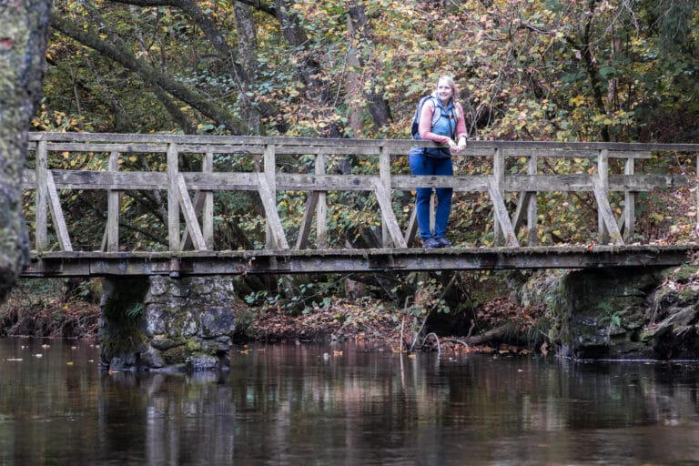 Ausgangspunkt ist der Picknickplatz Lesse, wo du zum Beispiel mit dem Fahrrad hinkommst. Auf dem Rundweg wanderst du entlang von Fließgewässern und querst Brücken. Zu den Highlights zählt auf jeden Fall die Cochettes-Brücke mit einer Katzenkunstfigur und dem Ausblick auf die Flusszweigung am Pferdefelsen. Orientierung gibt die rote Markierung mit der Nummer 4.