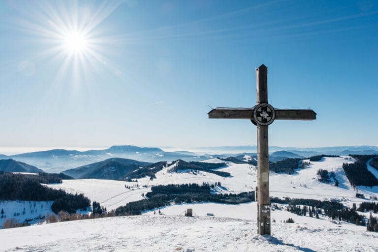 Der Osser ist einer der weniger begangenen Gipfel im Grazer Bergland. Zu unrecht, denn aussichtsreich ist er von ganz oben – und ein Gipfelkreuz hat er auch.