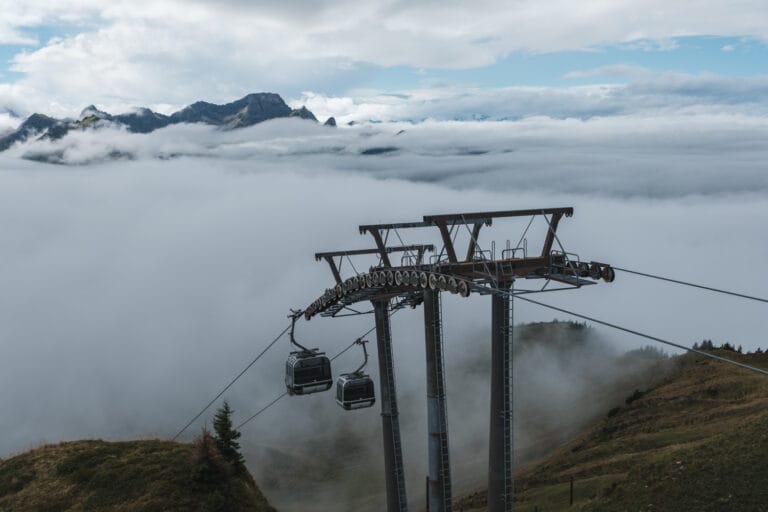Der Diedamskopf in Schoppernau gilt als einer der schönsten Aussichtsbergen im gesamten Bregenzerwald. Und einfach zu erreichen ist er noch dazu. Gondeln fahren über die Mittelstation und noch weiter auf den Berg hinauf. Von der Bergstation bis zum Gipfel sind es dann nur noch wenige Gehminuten bis zum Gipfelkreuz, auf recht breitem aber steilen Schotterweg. Auf dieser Höhe genießt du einen weiten Blick auf die spektakuläre Bergwelt und bis zum Bodensee.