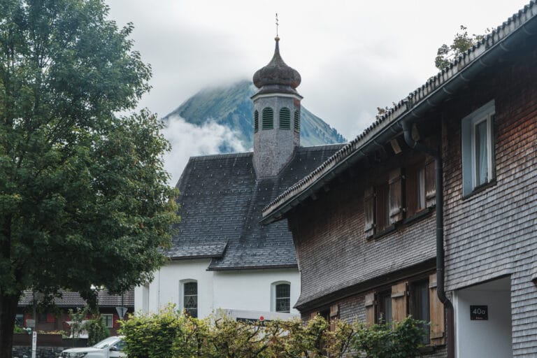Ein von den Österreichischen Wanderdörfern zertifizierter Themenweg ist der Alpgang. Diesen gibt es in der großen und kleinen Variante. Ausgangspunkt ist die Au-Kirche Rehmen. Du wanderst vorbei an einigen Tafeln und erfährst viel über die Bregenzerwälder Landwirtschaft. Der Weg ist gut beschildert und weist unterwegs darauf hin, wo du abkürzen könntest, um nur die kleine Runde zu gehen. Ein kurzer Schlenker führt auch zu einem Wasserfall.